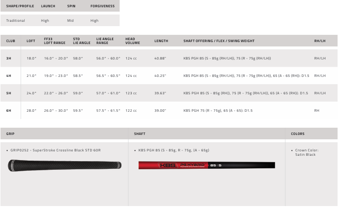 To optimize MOI, the OPTM hybrid features a slightly larger and shallower profile to create our most stable and accurate hybrid ever. A longer blade length with internal mass spread further apart in the heel and toe areas drives forgiveness to the max for improved downrange consistency, more greens in regulation and lower scores.