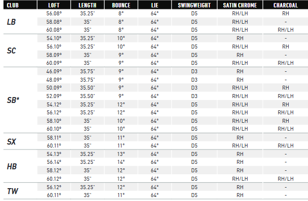 In addition to the three standard bounce options, the MG5 line also includes three additional grinds for golfers looking for specialised performance.