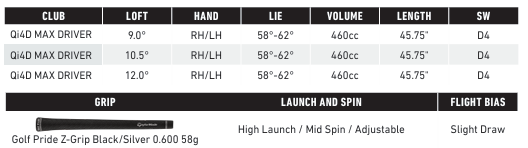 • Qi4D Max drivers feature a new and improved roll radius, yielding more consistent spin regardless of vertical impact location.